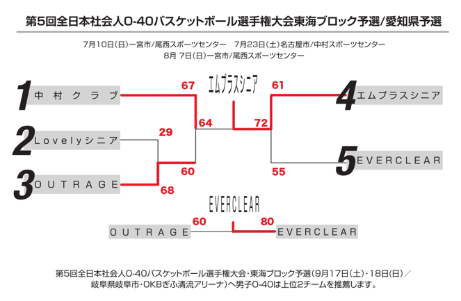 上位2チームが「第 5 回全日本社会人 O-40バスケットボール選手権大会・東海ブロック予選」へ推薦される