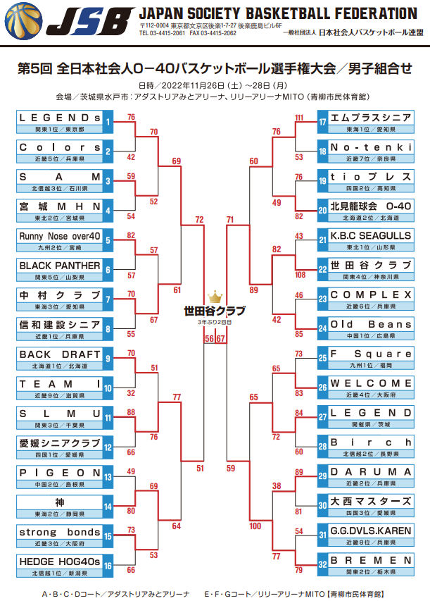 上位3チームが2022年11月に開催する「第5回全日本社会人O-40バスケットボール選手権大会」に推薦される
