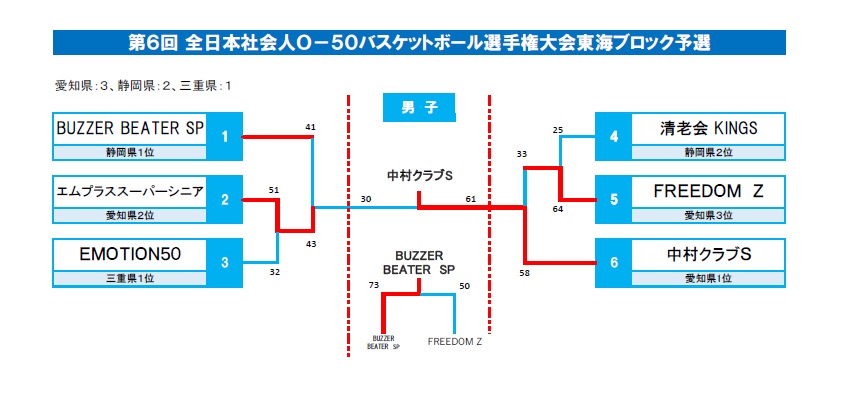 上位1チームが「第 5 回全日本社会人 O-50バスケットボール選手権大会・東海ブロック予選」へ推薦される